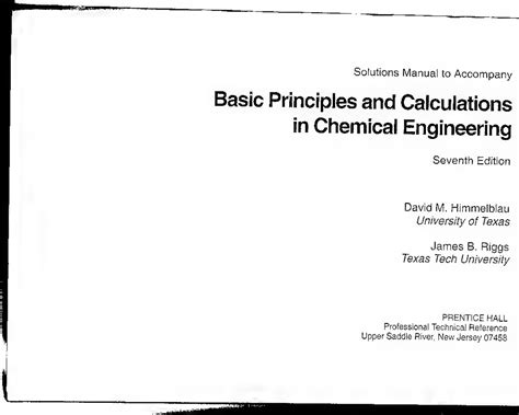 Download PDF Online Solution Manual Basic Principles and Calculations in Chemical Engineering 7th Edition Board Book PDF